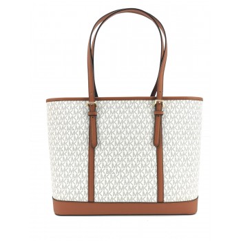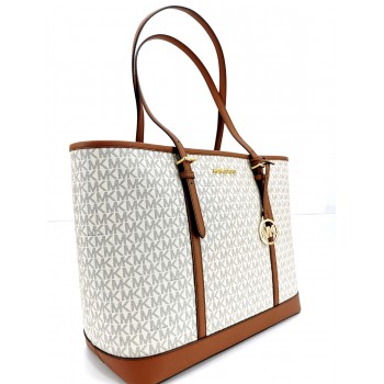 Bolso Tote Michael Kors Jet Set Travel Grande Lona Monocromada Vainilla Nuevo A Estrenar