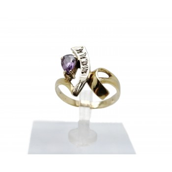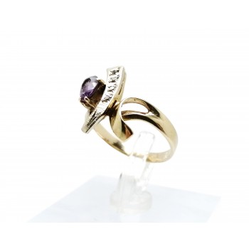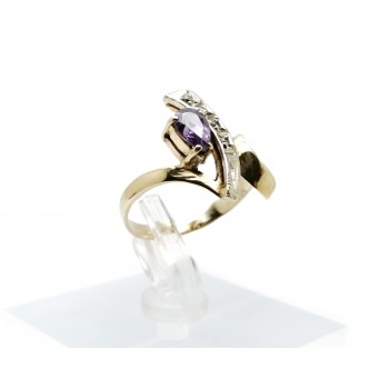 Se vende anillo de oro amarillo de 14 quilates macizo con Diamantes y circonita de segunda mano.