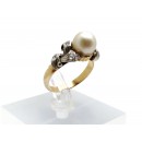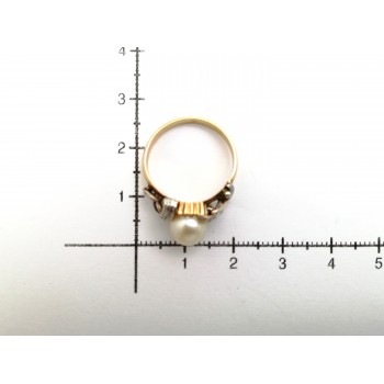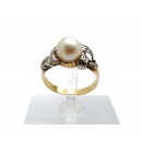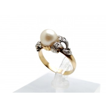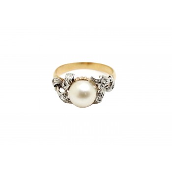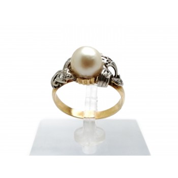 Se vende anillo de oro bicolor de 18 quilates macizo con Perla y circonitas de segunda mano.
