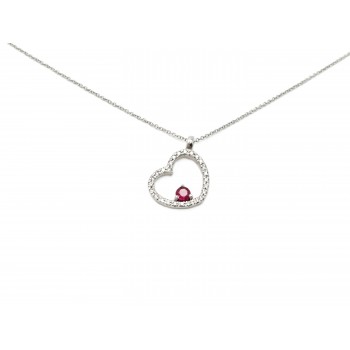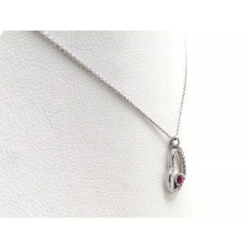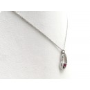Se vende conjunto de cadena y colgante de oro blanco de 18 quilates macizo con Diamantes y Rubí de segunda mano.