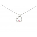 26 Diamantes de talla brillante con un total de 0.10 quilates aproximadamente y 1 Rubí sintético de talla redonda.