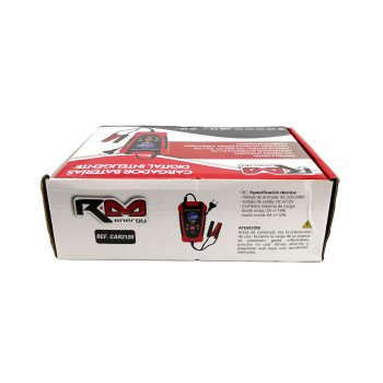Se vende Cargador Baterias Coche / Moto 6V/12V Rm Connect NUEVO.- Pantalla digital.- CPU control inteligente.- Identifica automáticamente si la batería es de 6V o 12V.- Carga de baterías tipo: AGM, GEL, SLA y EFB.- Protección para : polaridad inversa, sobretensión y sobrecalentamiento.- Voltaje Entrada: 110V o 220V AC.- Voltaje Salida DC 6/12V- Corriente max de carga: Modo moto 2A +/- 10% Modo coche 6A +/- 10%1 año de garantía.Envíos en 24h.Código 114135