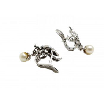 Se venden pendientes de oro blanco de 18 quilates macizos con Diamantes y Perlas de segunda mano.