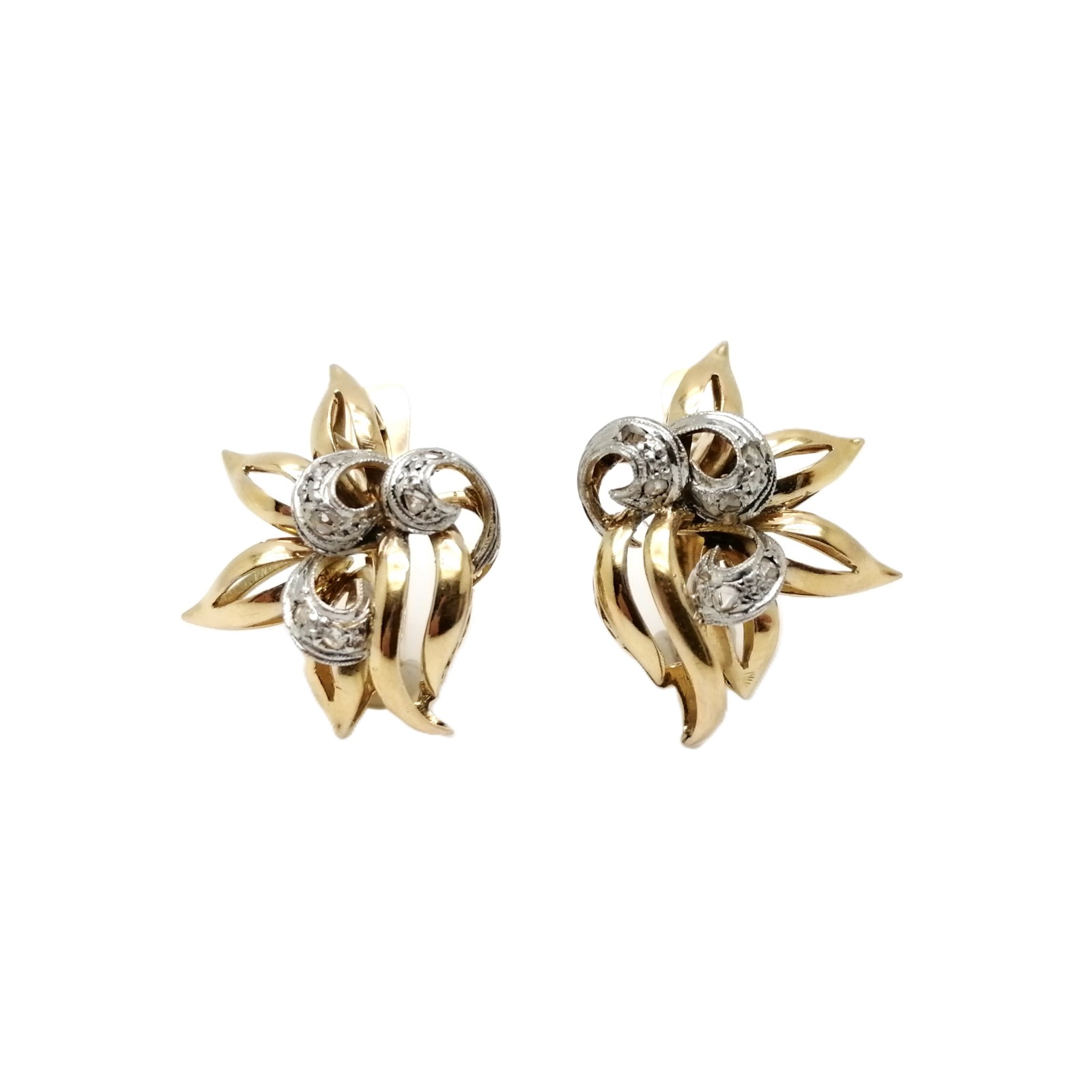 Se vende pendientes de oro bicolor de 18 quilates macizos con Diamantes de segunda mano.