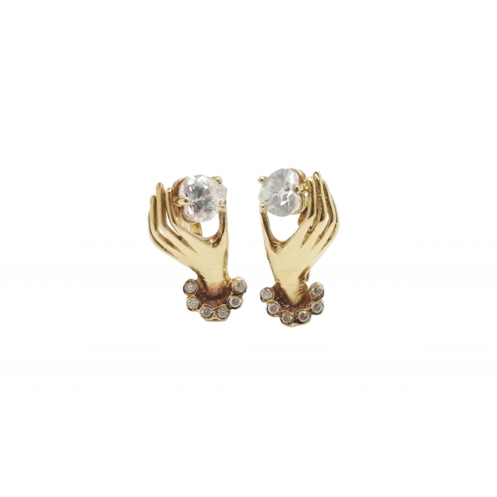 Se venden pendientes de oro amarillo de 18 quilates macizos con circonitas de segunda mano.