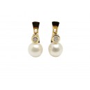 Se venden pendientes tipo " tu y yo " de oro amarillo de 18 quilates macizos con Perlas y Diamantes de segunda mano.