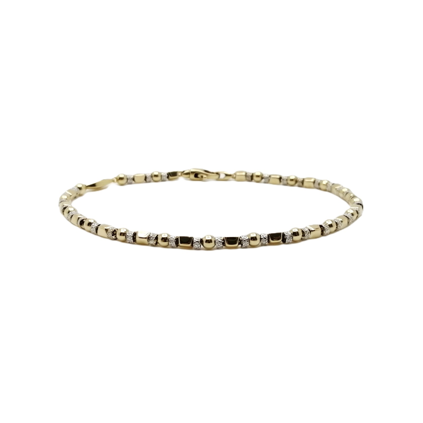 Se vende pulsera de oro bicolor de 18 quilates semihueca de segunda mano.