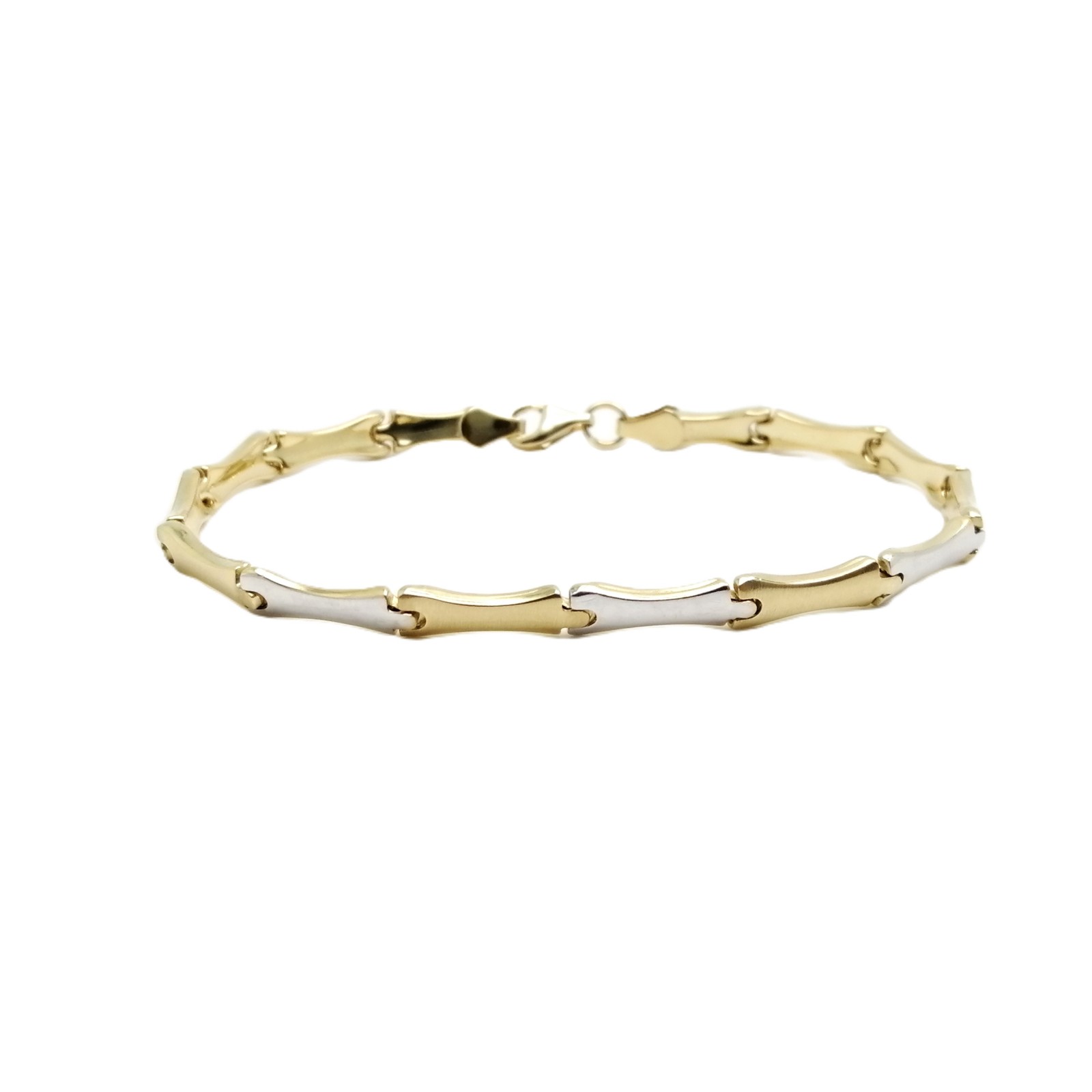 Se vende pulsera de oro bicolor de 18 quilates semihueca de segnda mano.