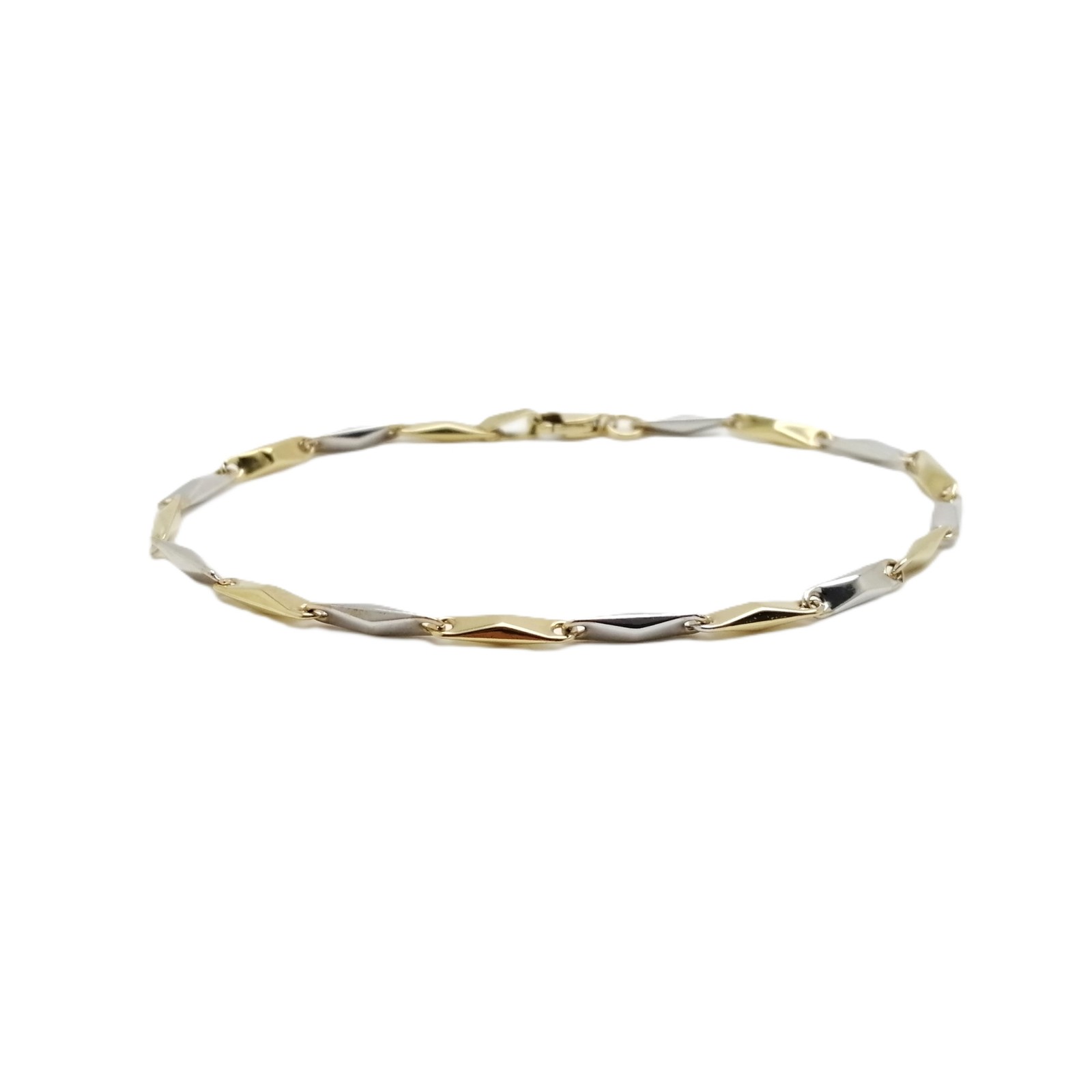 Se vende pulsera de oro bicolor de 18 quilates semihueca de segunda mano.