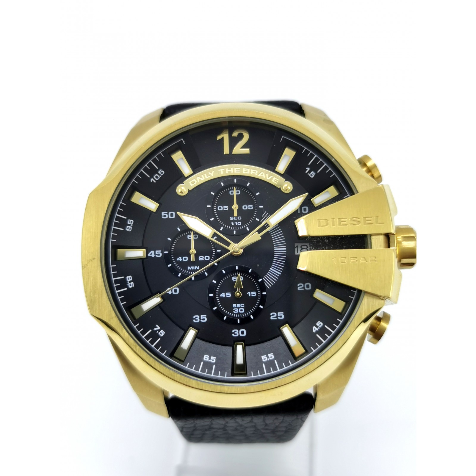 SE VENDE: Reloj Diesel DZ4344 Mega Chief Cronógrafo para hombre ? Excelnte estado Diseño audaz con caja dorada y correa de cuero negro. Un reloj que combina elegancia y funcionalidad para destacar en cualquier ocasión. Modelo: DZ4344 Mega Chief Movimiento: Cuarzo Funciones: Cronógrafo Material de la caja: Acero inoxidable con acabado dorado Tamaño de la caja: 51 mm Color de la correa: Negro Tipo de cierre: Hebilla Cristal: Mineral Estado: Excelente, sin marcas. Envío: 24 horas Garantía: 1 año Código interno: 108705