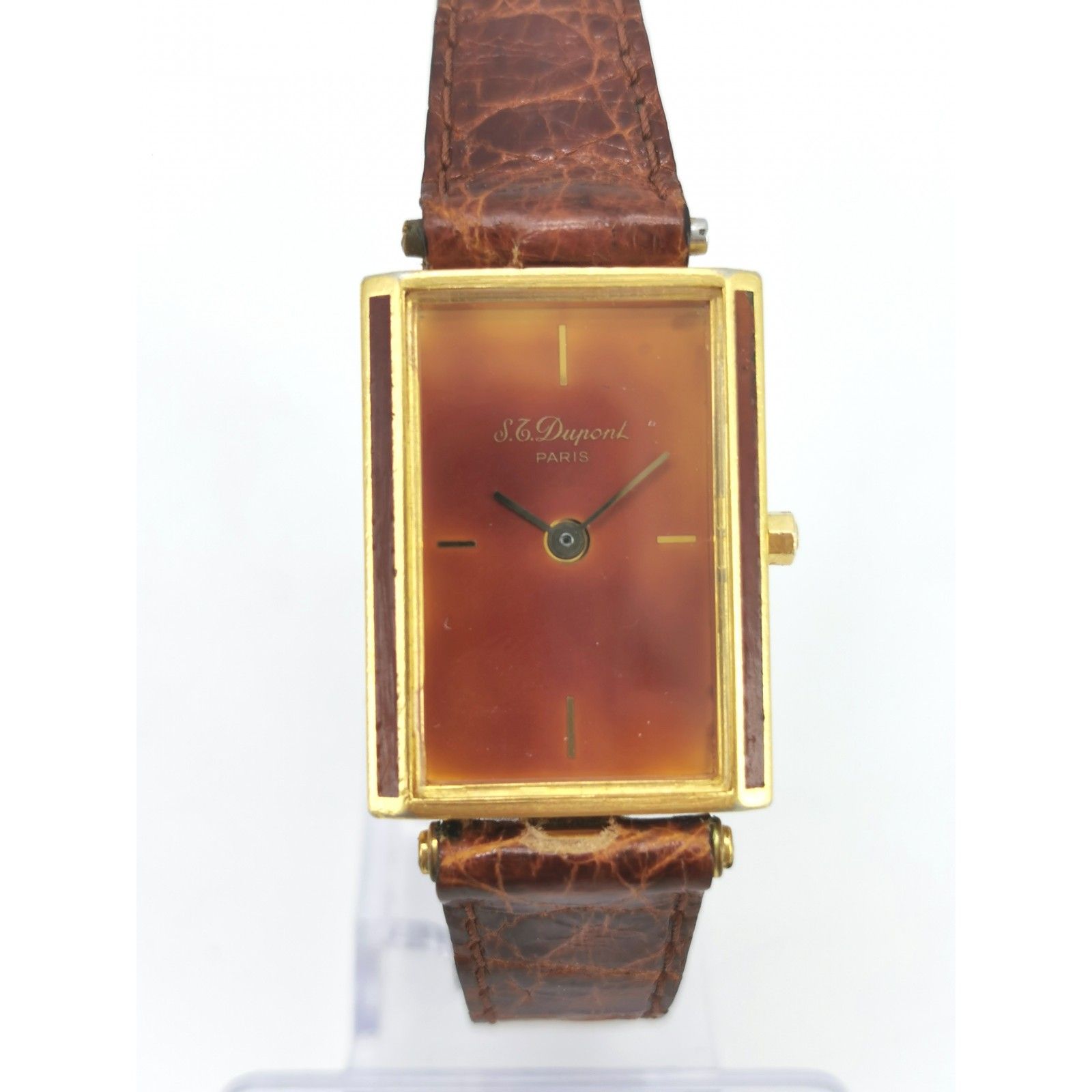 SE VENDE: Reloj Dupont Vintage en excelente estado.? Reloj de lujo con caja plaque oro y esfera de laca china con polvo de oro, que aporta un toque de distinción y elegancia.? Características principales: Movimiento: Cuarzo suizo Material de la caja: Plaque oro con laca china y polvo de oro Diámetro: 21mm Color de la esfera: Ocre a través de lacado Chino. Correa: Piel (no original) Cristal: Zafiro Resistencia al agua: 5 ATM (apto para uso diario) Nota: sin caja ni documentación. Años: 1990s. Revisado el día 30/04/2025 Estado: Excelente, leves marcas de uso. Envíos: 24 horas Garantía: 1 año Código interno: 111741