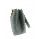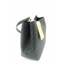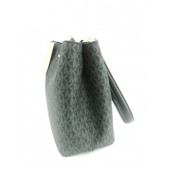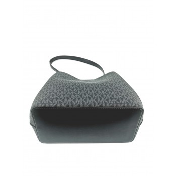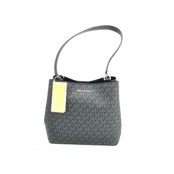 Este elegante Bolso de hombro Pratt mediano de Michael Kors destaca por su silueta atemporal inspirada en las bomboneras (bucket bag). Está confeccionado en una mezcla de lona revestida color negro con ribetes a juego y apliques metálicos en tono dorado, lo que le confiere una gran durabilidad y un acabado lleno de textura.