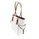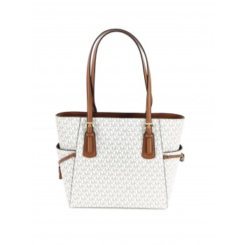 El Bolso Tote Voyager grande de Michael Kors combina el icónico estampado de logotipos con un elegante bloque de color vainilla, resultando en un accesorio funcional y moderno. Su tamaño es ideal para llevar todo lo que necesitas, con un interior organizado gracias a su compartimento central con cremallera. Perfecto para añadir un toque de glamour a tu estilo diario.