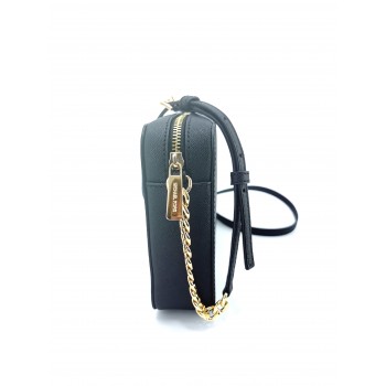 Esta elegante bandolera de Michael Kors, perfecta para llevar lo esencial con estilo, destaca por su lona negra. El diseño espacioso cuenta con apliques en tono dorado y una correa de eslabones ajustable para llevarla cómodamente cruzada.