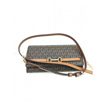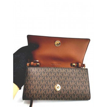 Exclusivo bolso de la firma Michael Kors que destaca por su versatilidad y diseño multifuncional. Confeccionado en la icónica lona con el estampado de logotipos "Signature" de la marca, este modelo combina los tonos marrones clásicos con elegantes detalles en piel.