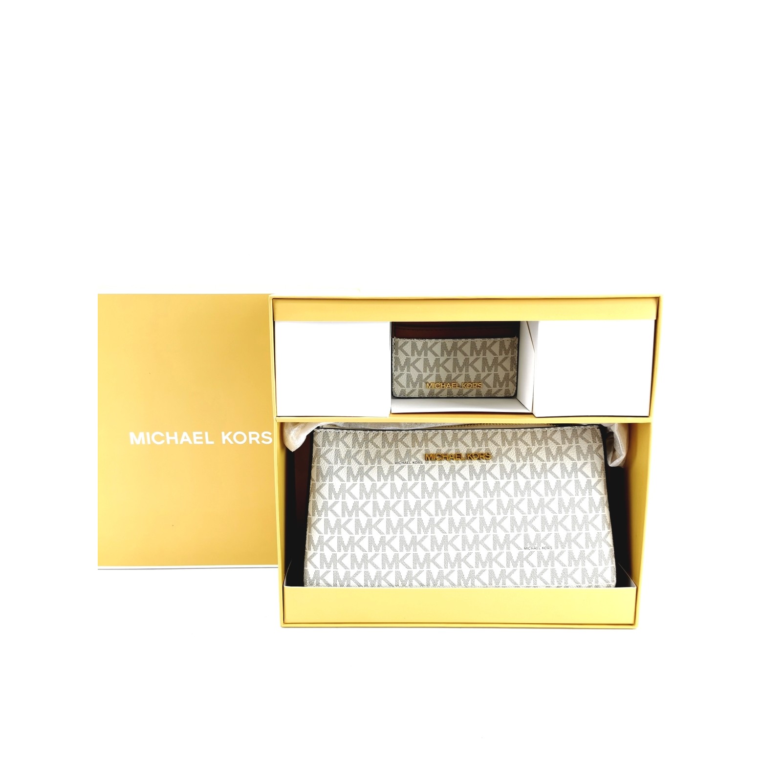 SE VENDE: Set de Regalo MICHAEL KORS Pouch y Tarjetero Exclusivo conjunto de la firma Michael Kors, una combinación perfecta de funcionalidad y estilo diseñada para la organización moderna. Este set destaca por su confección en la emblemática lona revestida con el logotipo "Signature" de la marca, ofreciendo una durabilidad excepcional y un acabado estético de lujo. Detalles del Artículo:Marca: Michael KorsModelo: Medium Logo Pouch and Card Case Gift SetMaterial: Lona revestida con estampado de logotipos y detalles en piel sintéticaColor: Vainilla monocromadoComponentes: 1 Neceser/Pouch con cremallera + 1 Tarjetero con múltiples ranurasMedidas bolso: 24cm (ancho) x 15cm (alto) x 6cm (prof)Estado: Nuevo a EstrenarGarantia 1 añoEnvios 24 hs.Código interno: 115816