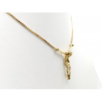 Se vende cadena de oro amarillo de 18 quilates maciza con un Cristo de segunda mano.