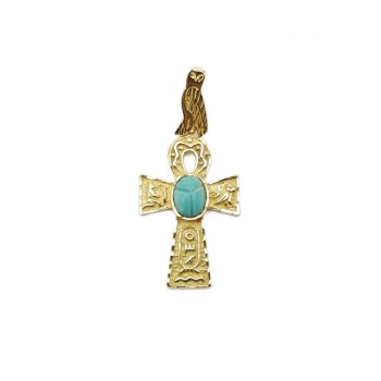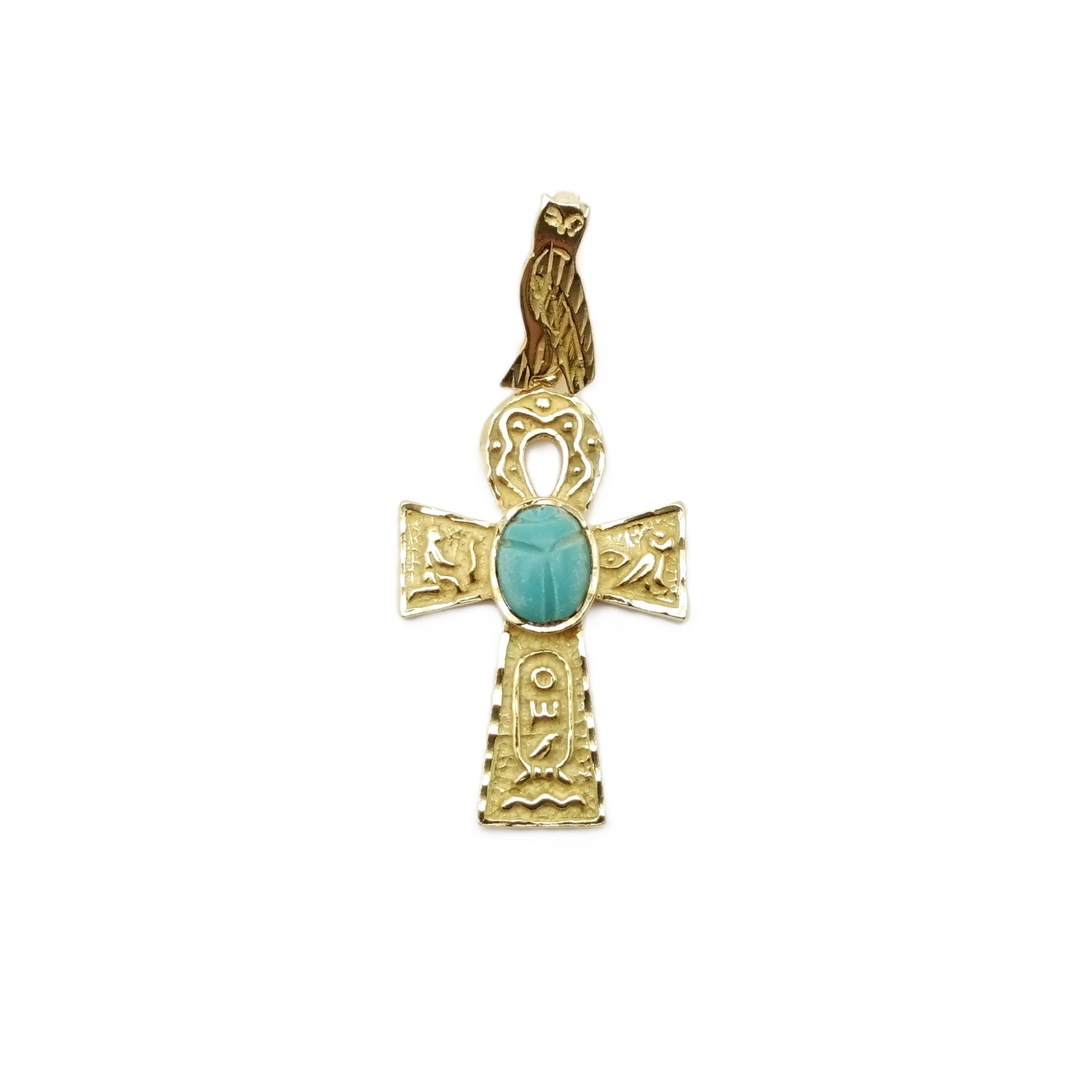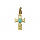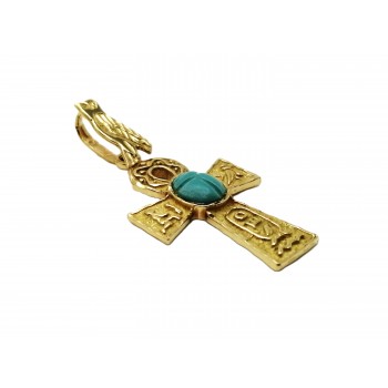 Se vende cruz de oro amarillo de 18 quilates maciza con Turquesa de segunda mano.
