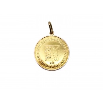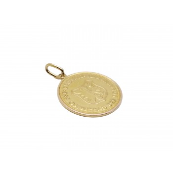 Se vende colgante tipo medalla de oro amarillo de 14 quilates maciza de segunda mano.