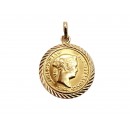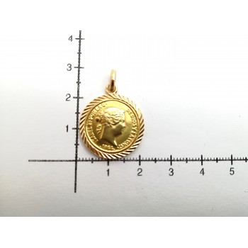 Se vende colgante tipo medalla de oro amarillo de 18 quilates macizo de segunda mano.