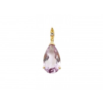 1 Diamante de talla brillante con 0.02 quilates aproximadamente y 1 Amatista de Brasil en talla Lágrima.