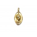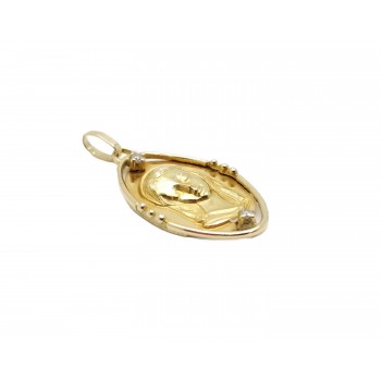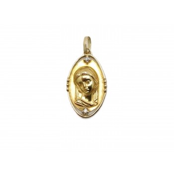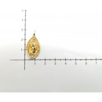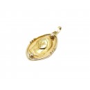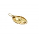 Se vende colgante tipo medalla ovalada de oro amarillo de 18 quilates semihueca con Diamantes de segunda mano.