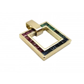 Se vende colgante de oro amarillo de 18 quilates macizo con Esmeraldas, Zafiros y Rubís de segunda mano.