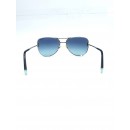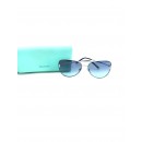 Elegantes gafas de sol de diseño tipo "Aviador" o "Pilot" que encarnan la sofisticación atemporal de Tiffany & Co. Este modelo destaca por su montura metálica en color plata y sus cautivadoras lentes en azul degradado (Azure Graduated Blue), que evocan el icónico tono "Tiffany Blue"