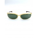 Icónicas gafas de sol vintage de la mítica firma Ray-Ban, fabricadas en EE. UU. por Bausch & Lomb antes de la adquisición por Luxottica. Este modelo Olympian VI es una pieza de coleccionista que destaca por su diseño envolvente y deportivo, con una distintiva barra superior metálica que recorre todo el frente, aportando una estructura robusta y un estilo inconfundible.
