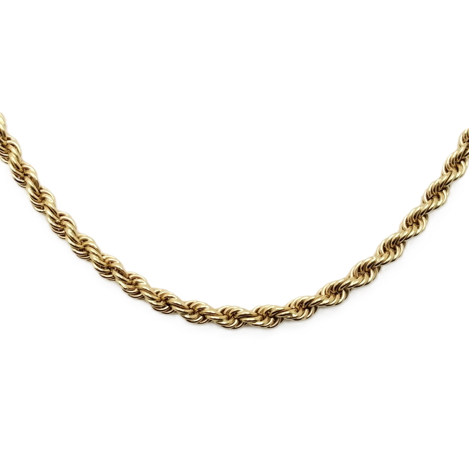 Se vende cadena tipo cordón de oro amarillo de 18 quilates semihueco de segunda mano.