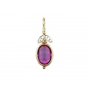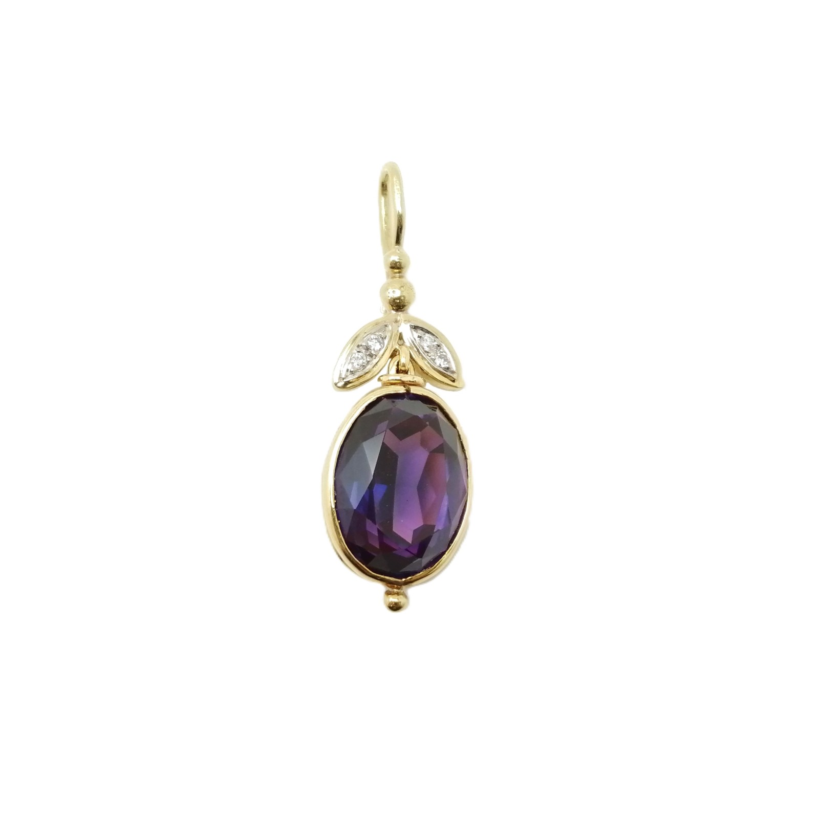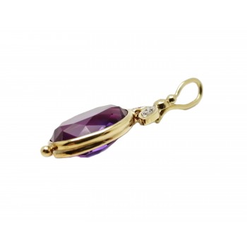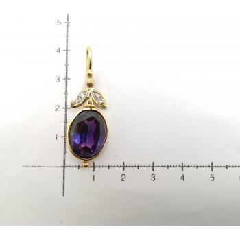 Se vende colgante de oro amarillo de 18 quilates semihueco con Diamantes y Amatista de segunda mano.