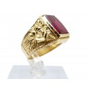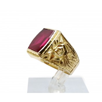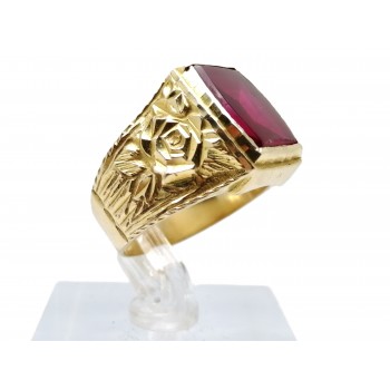 Se vende anillo tipo sello de oro amarillo de 14 quilates hueco con circonita de segunda mano.
