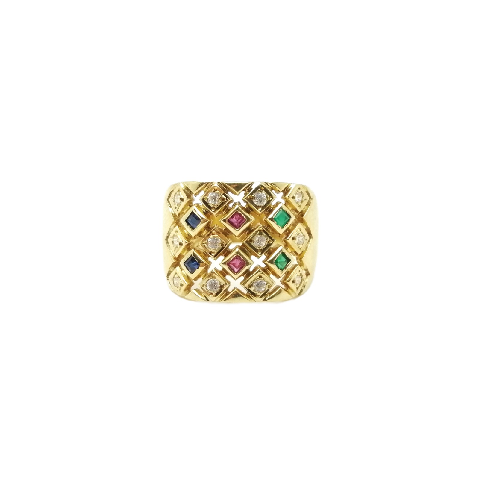 Se vende anillo de oro amarillo de 18 quilates macizo con circonitas de segunda mano.