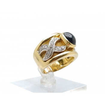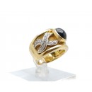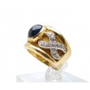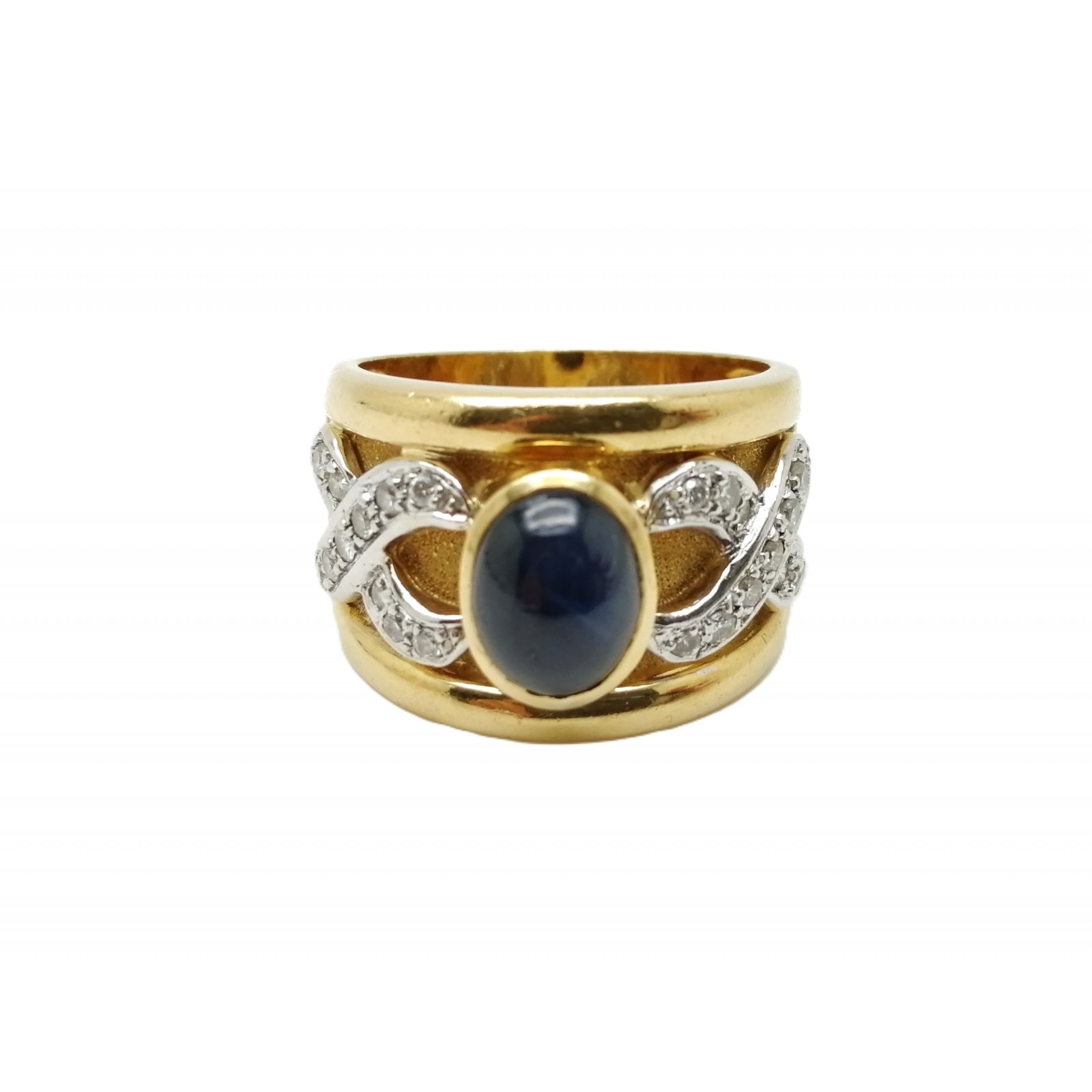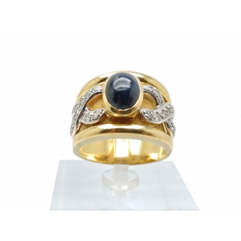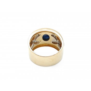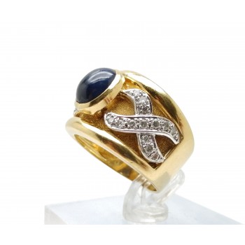 Se vende anillo de oro amarillo de 18 quilates macizo con Diamantes y Zafiro de segunda mano.