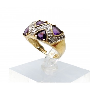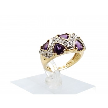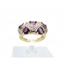 Se vende anillo de oro bicolor de 18 quilates macizo con Diamantes y Amatistas de segunda mano.