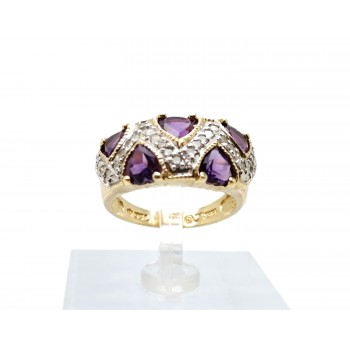 28 Diamantes de talla brillante con un total de 0.20 quilates y 5 Amatistas de talla corazón.
