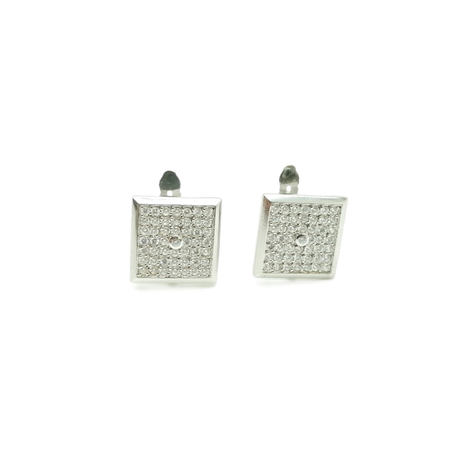 Se venden pendientes de oro blanco de 18 quilates macizos con circonitas de segunda mano.