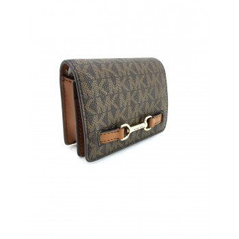 Esta compacta y sofisticada cartera de la línea Carson es el ejemplo perfecto de funcionalidad en un formato reducido. Confeccionada con la emblemática lona de sarga con el estampado de logotipos de Michael Kors, esta pieza destaca por sus acabados en piel y sus elegantes apliques metálicos.