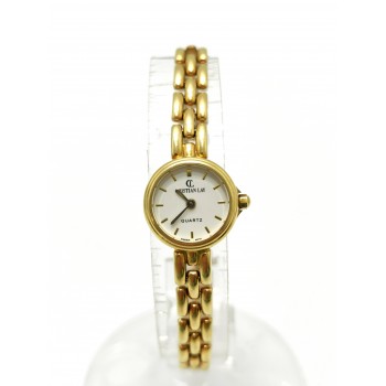 Pon un toque de lujo clásico en tu muñeca con este elegante reloj de señora de Oro de Ley de 18 Kilates de la marca Cristian Lay. Este modelo vintage de los años 90 destaca por su diseño atemporal y su fiabilidad, impulsado por un preciso movimiento de Cuarzo Suizo.