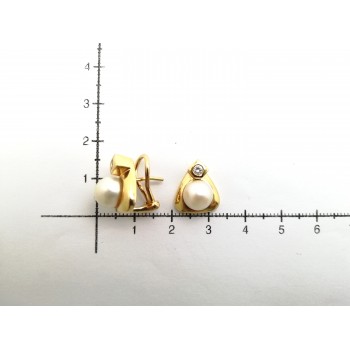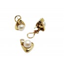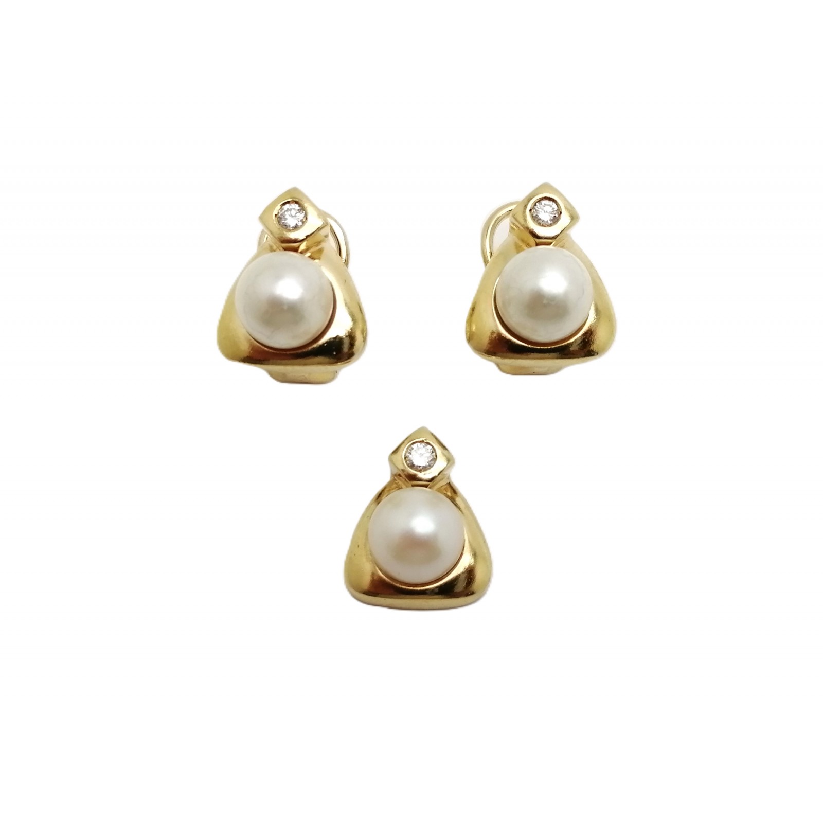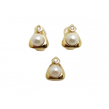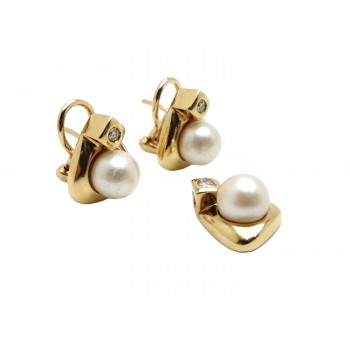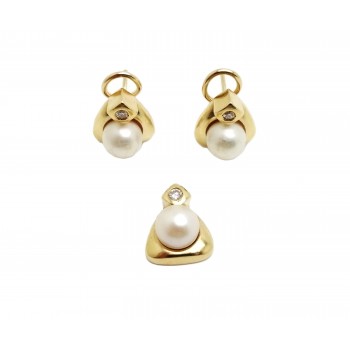 Se vende conjunto de pendientes y colgante en oro amarillo de 18 Kt. macizos con Diamantes y Perlas de segunda mano.