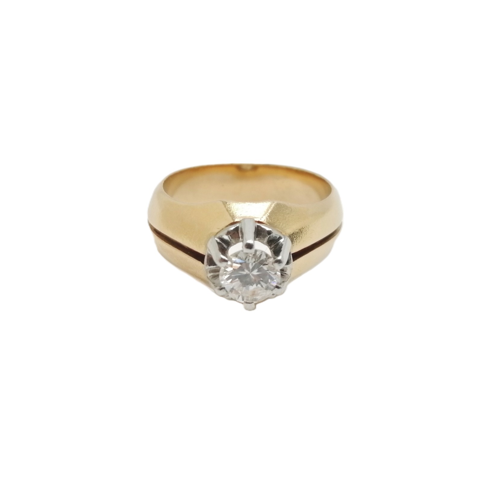 Se vende anillo tipo solitario de oro bicolor de 18 quilates macizo con Diamante de segunda mano.