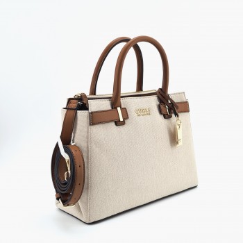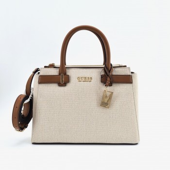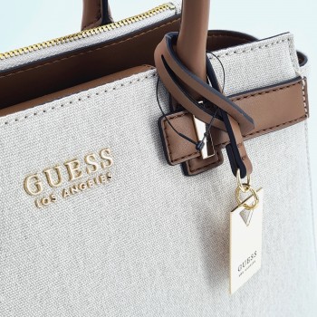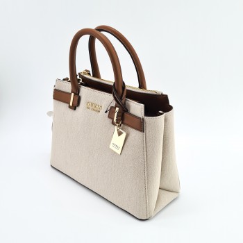 Se vende bolso de mano GUESS Round Rock Brown MM935806 Piel vegana y tela En perfecto estado nuevo desprecintado. Incluye guardapolvos.Medidas: Largo: 32 cm. Alto: 23,5 cm. Profundidad: 13 cm.Caída asas de mano: 11 cm. Bolso modelo Round Rock Brown confeccionado en tela tejana color beige con asas y acabados en piel vegana color marrón, Charm y detalles en metal dorado. Interior de tela color beige con tres compartimentos para tarjetas y dos bolsillos con cremallera. Cierre de pequeña solapa con botón magnético. Correa ajustable y desmontable para llevar colgado del hombro o como bandolera.Garantía 1 año.Envíos 24 h.Código: 114692.