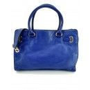 Bolso MICHAEL KORS Hamilton Grande de piel seminuevo En perfecto estado de conservación. Largo: 36 cm. Alto: 33 cm. Profundidad: 13 cm. Fabricado en piel granulada color azul/morado con detalles metálicos dorados. Dos asas redondeadas de mano y correa de piel y metal para llevar del hombro. Diseño exclusivo. Varios compartimentos interiores, un bolsillo con cremallera. Forro 100% poliester color negro. 1 año de garantía. Envíos en 24h. Código interno: 110134