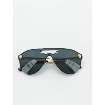 SE VENDE: Gafas de sol Versace VE2161 100287 de segunda mano en excelente estado. Diseño llamativo con montura metálica dorada y lentes grises espejadas que destacan por su estilo moderno y atrevido. Detalles del producto: