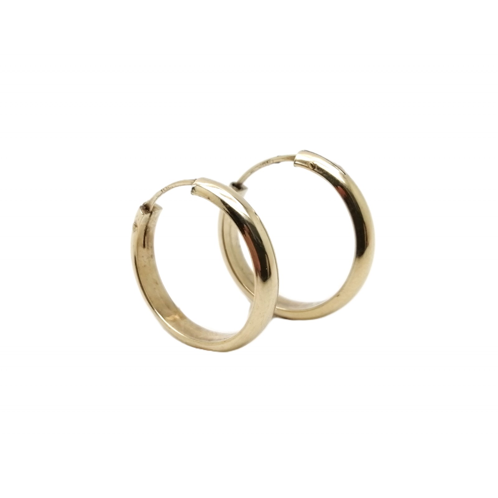 Se vende pendientes tipo aro de oro amarillo de 9 quilates huecos de segunda mano.