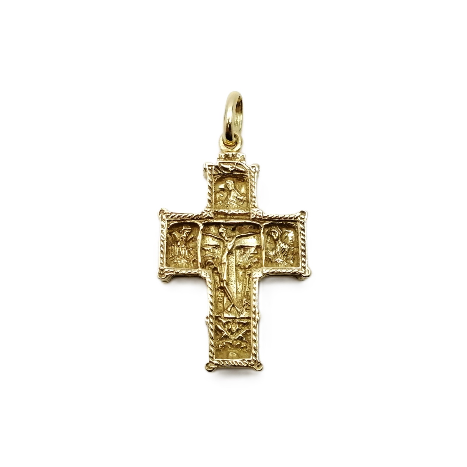 Se vende cruz de doble cara de oro amarillo de 18 quilates maciza de segunda mano.