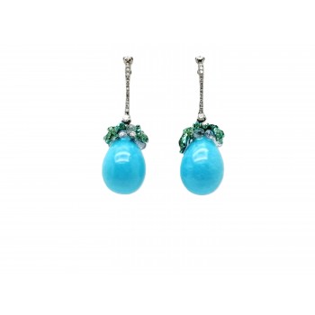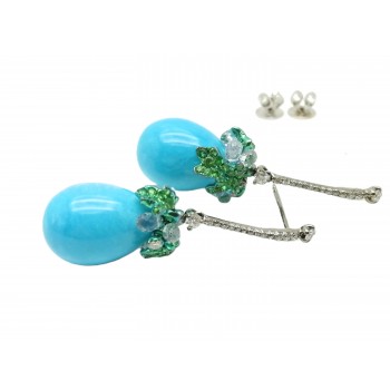 Se vende pendientes de oro blanco de 18 quilates macizos con Zafiros y Turquesas de segunda mano.34 Zafiros blancos en talla brillante con 2 Turquesas en forma de lagrima y rodeadas de cristales de swarovski.Peso: 11 gramos. Longitud: 43 mm. Anchura: 12.8 mm. Cierre: de Presión.Joya de oro de segunda mano en perfecto estado sin marcas de uso (ver fotos).1 año de garantía.¡Reserva ahora con facilidad eligiendo nuestro " Pago a Plazos" y disfruta de la comodidad y flexibilidad financiera que necesitas!Consúltanos en cualquiera de los canales habituales.Envíos en 24h.Código interno: 113521