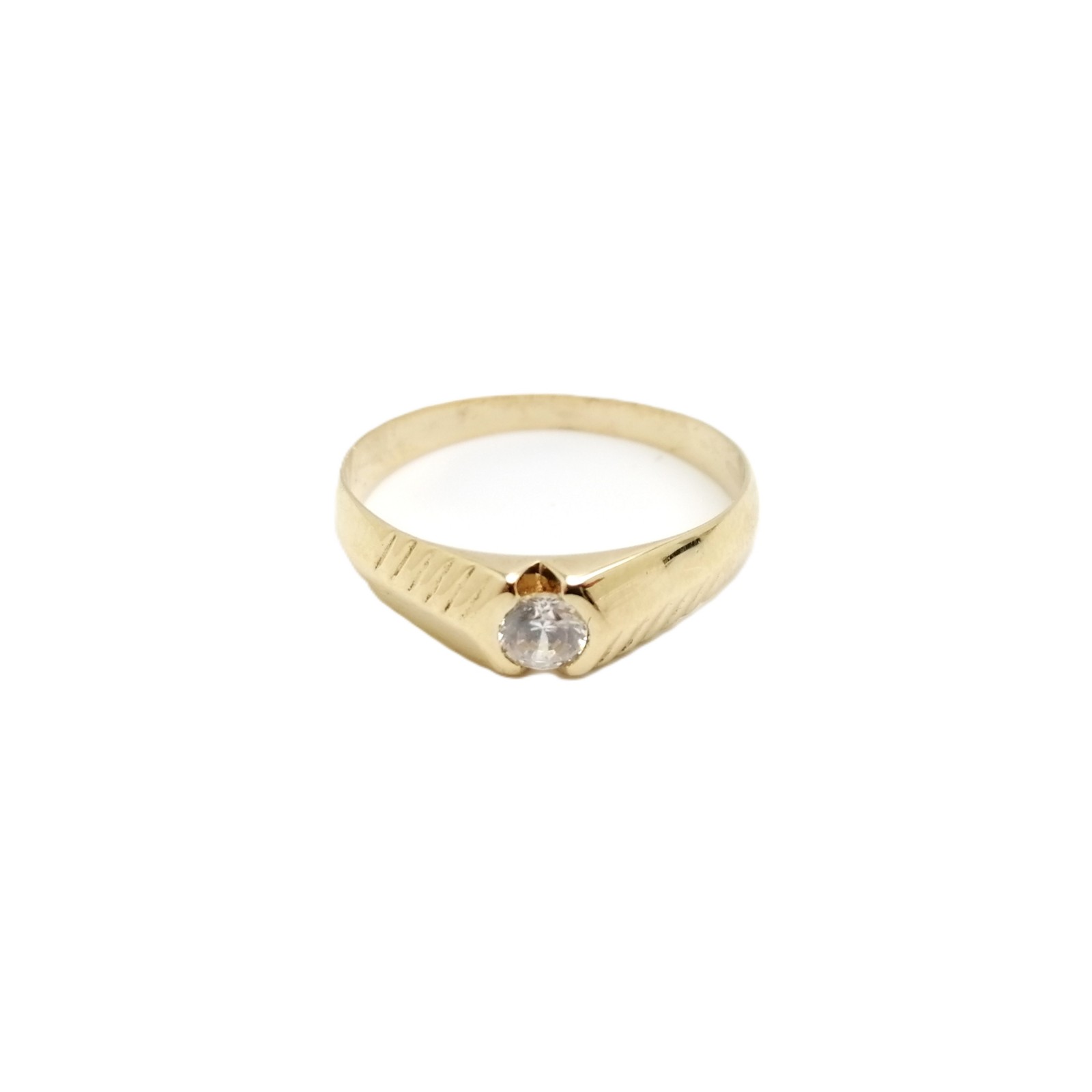 Se vende Anillo tipo solitario de oro amarillo de 18 quilates macizo con circonita de segunda mano.